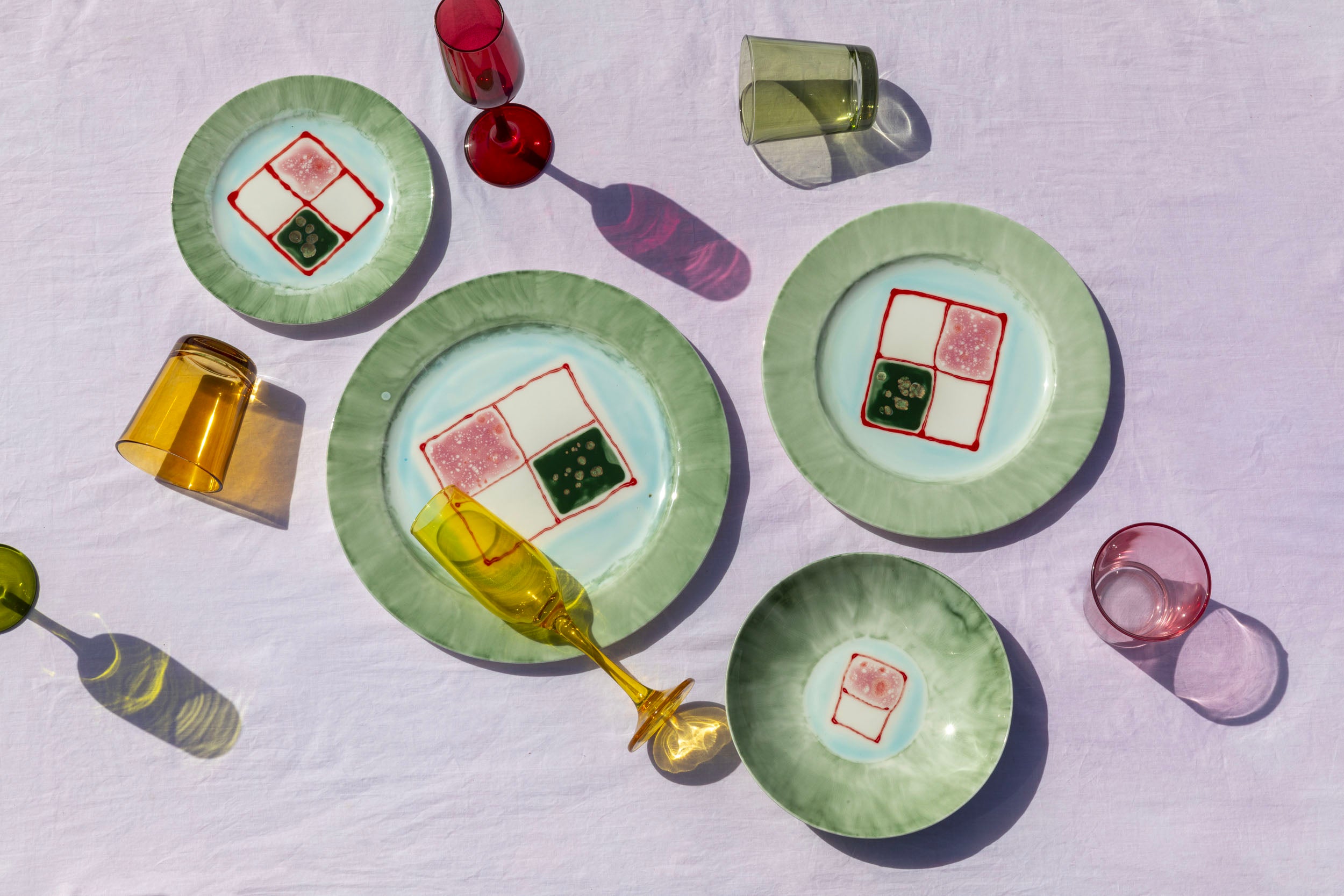 With its pastel green hues and geometric patterns on the plates, the Jade line strikes a perfect balance between softness and strength, offering a contemporary design full of character.