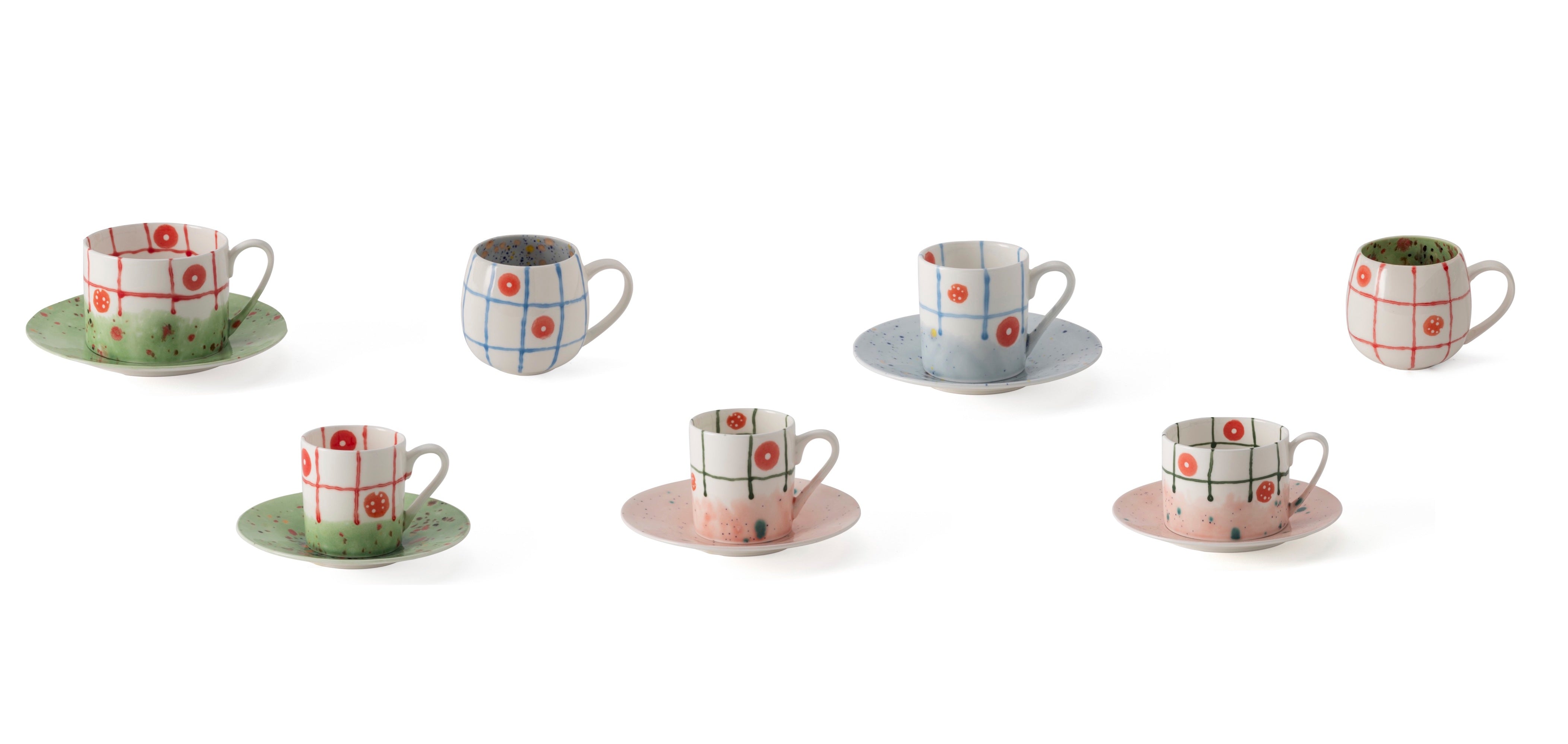 The Net collection evokes the charm of the countryside, infused with Coralla's vision of simplicity and playfulness. Designed for everyday use, this collection features joyful colors and a contemporary touch. The clean lines and net patterns on the small cups highlight a modern yet timeless elegance, embodying a perfect balance of simplicity and vibrancy.