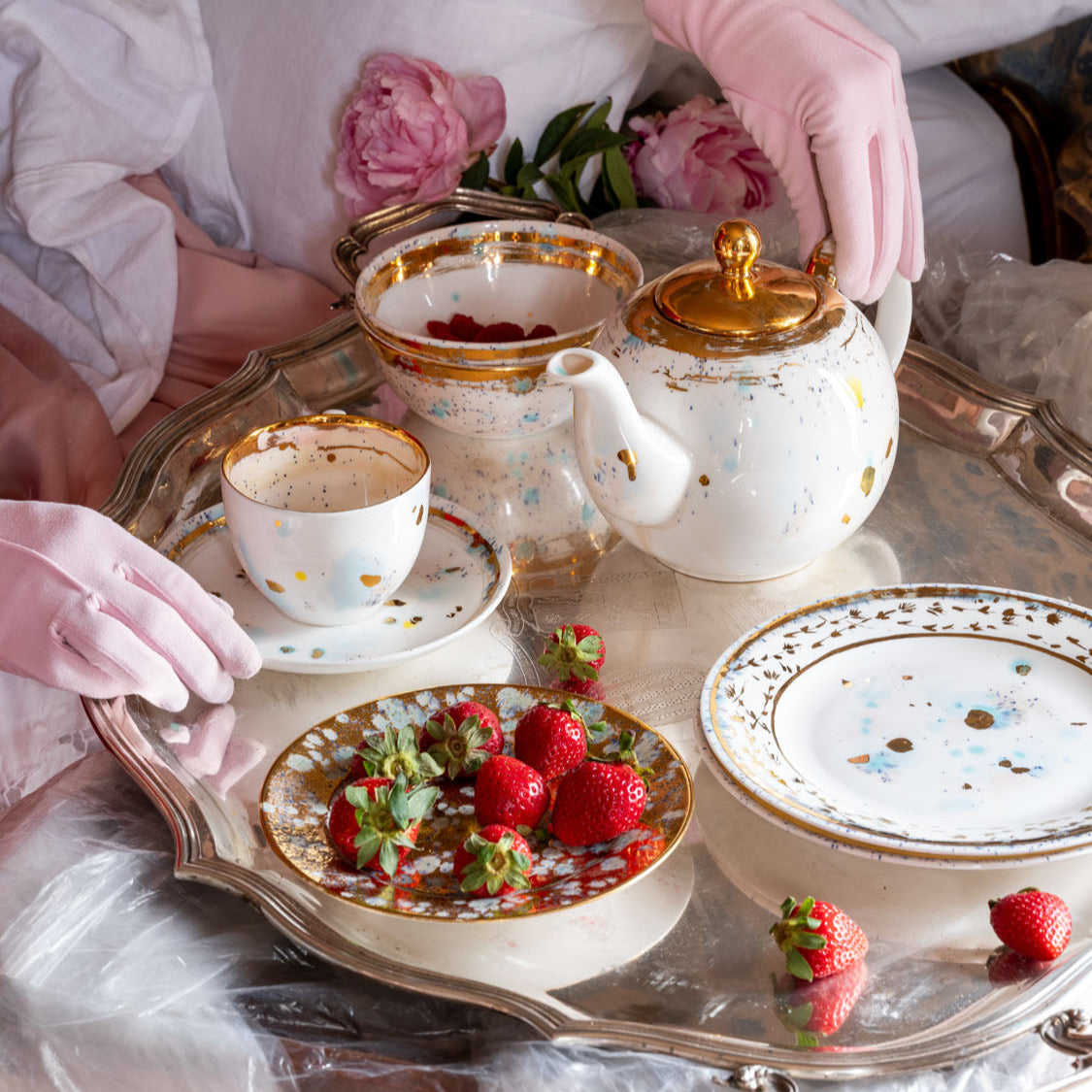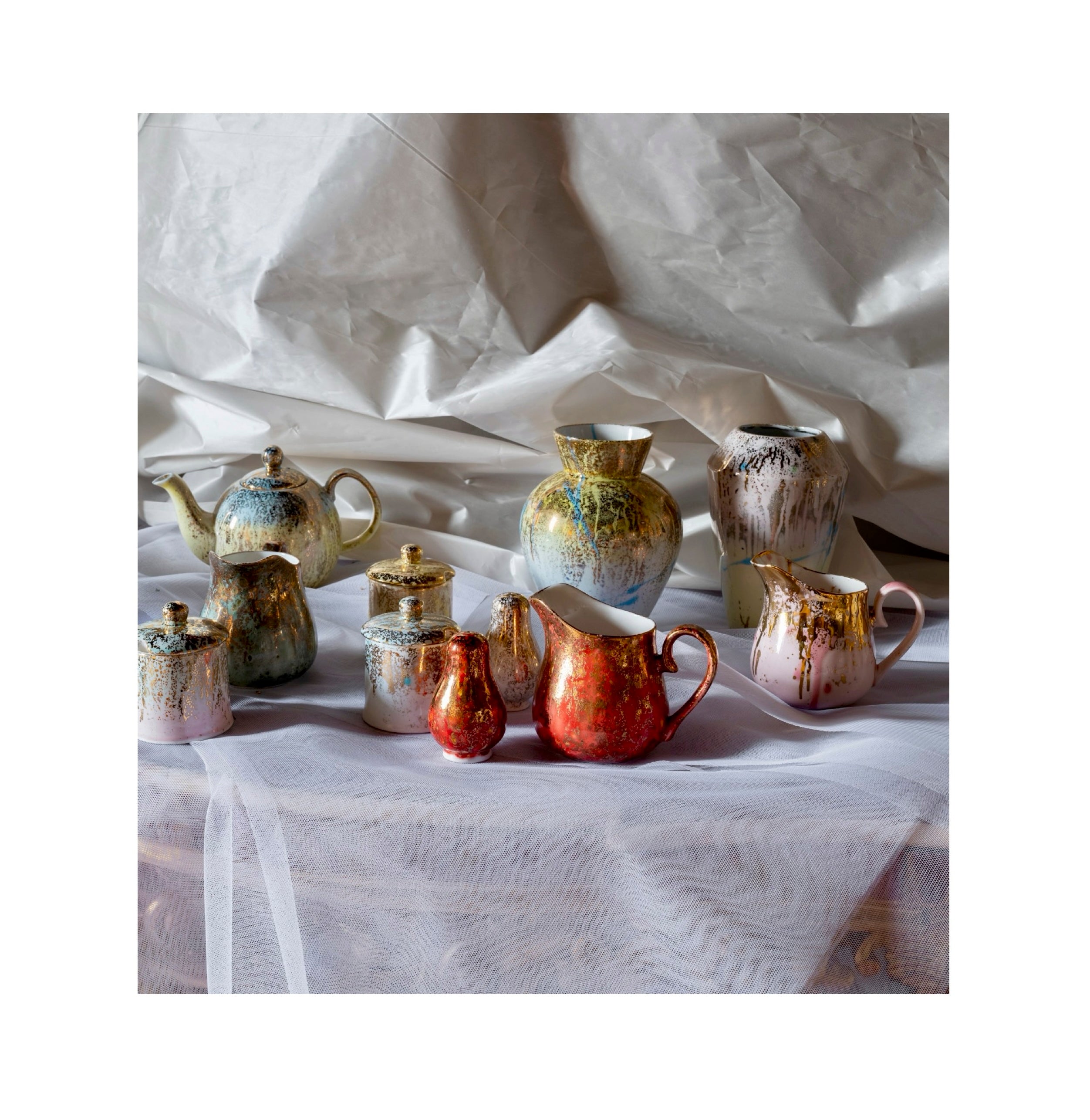 Coralla Maiuri is a prolific creator of objects. She is impatient with repetition and expresses herself in complete freedom. In the Gifts collection there are joyful flecks of gold and clouds of mother-of-pearl, with biblical donkeys, red mushrooms and long wild plants, evoking organic life. It is a cheerful and playful collection, as is in Coralla's nature. They are free, ageless gifts for a newborn baby, for a wedding, for a friend and for a loved one's birthday.