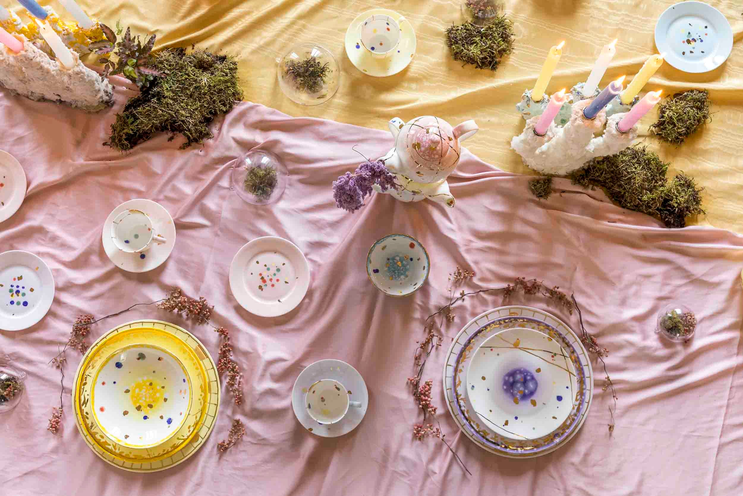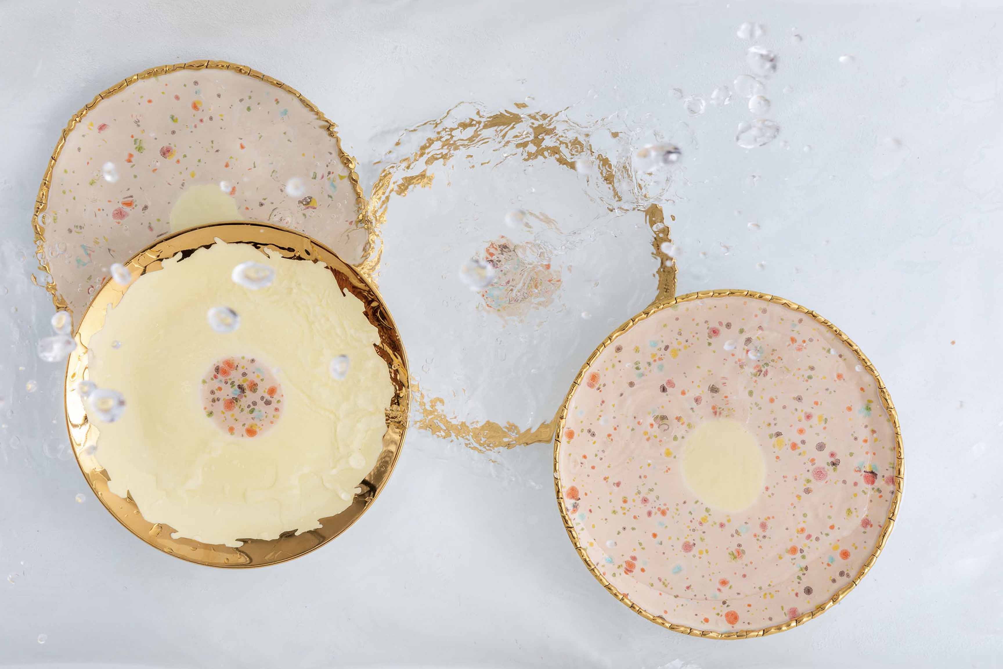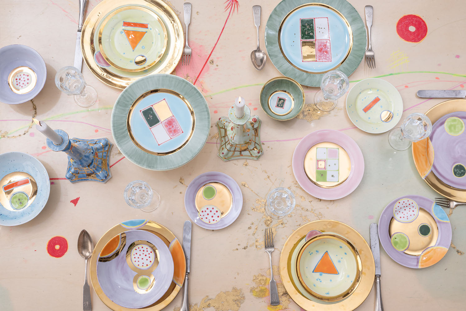 Playful and joyful, the Alpine collection brings color and energy to the table. Crafted in fine porcelain and hand-decorated, it combines a subtle net pattern in gold with vibrant color splotches, creating a lively, distinctive decor that is unmistakably Coralla Maiuri. Cheerful yet elegant, this collection is perfect for enjoying tea with small delicacies, adding a touch of contemporary art to every day.