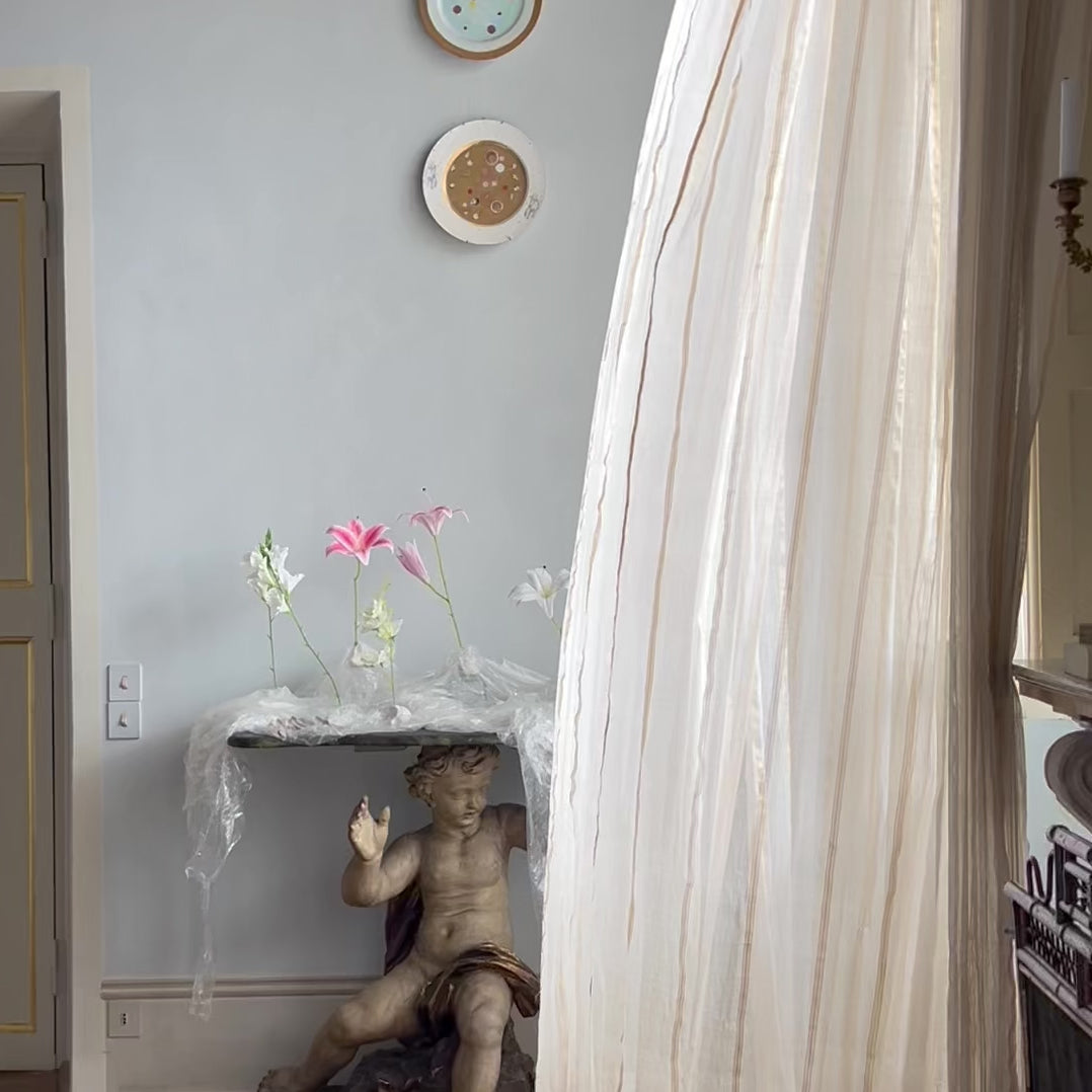 Material and earthy, like the great Renaissance Master’s work, it conveys classical beauty and elegance thanks to green shades with a light pink center, golden and green punctuation and broad golden rims. Golden and green dots and spots float like leaves on a romantic pond. The rim is surrounded by a large golden decoration.The soup and dessert plates are offered also with a full green and gold décor.